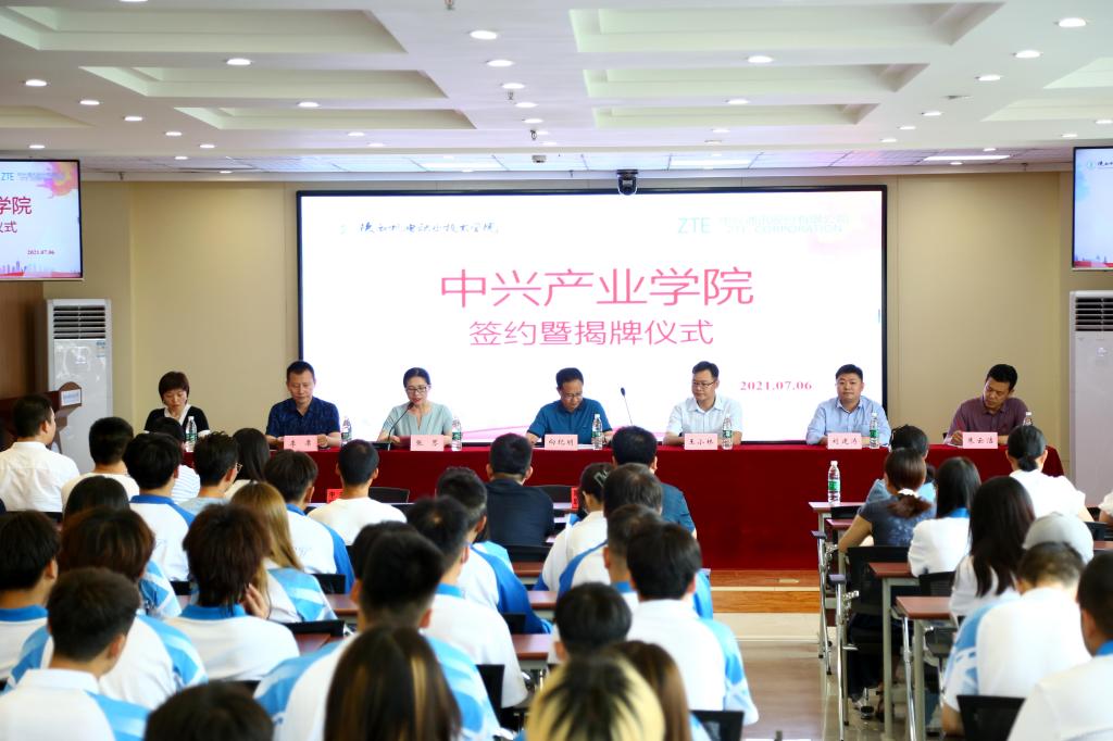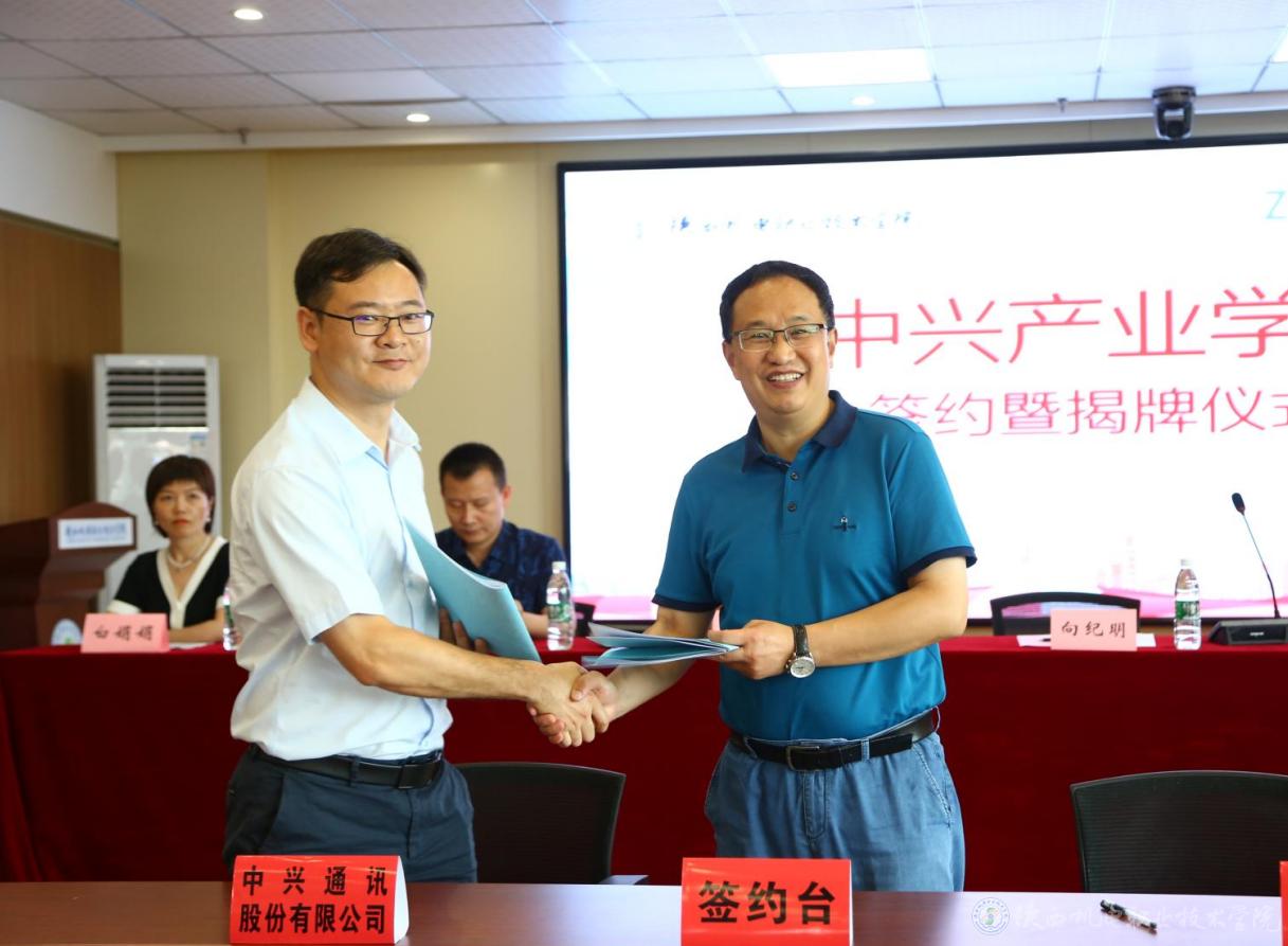 2021年7月6日,中兴产业学院签约暨揭牌仪式在宝福路校区汽车机电大楼举行,参加仪式的嘉宾有:中兴通讯西安生产部部长王小林、终端配送部部长李席、生产部技术科科长刘建涛,AC米兰中文官方网站党委副书记、校长向纪明,党委委员、副校长张琴,招生就业处、校企合作处处长,教务处处长,电子与信息学院党政负责人。本次签约暨揭牌仪式由副校长张琴主持。