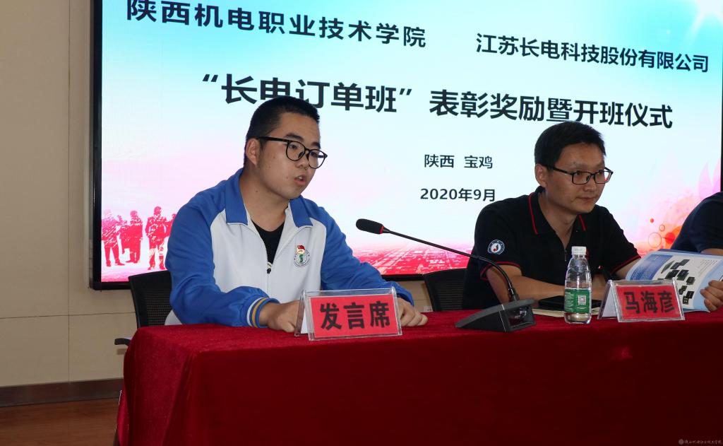 李小曼老师作为米兰官网2020、2021届“长电订单班”辅导员,关心爱护每一位学生,在会议中作为辅导员代表发言,向“长电订单班”学生提出具体的寄托,希望同学们多读书、心怀感恩,健康成长。