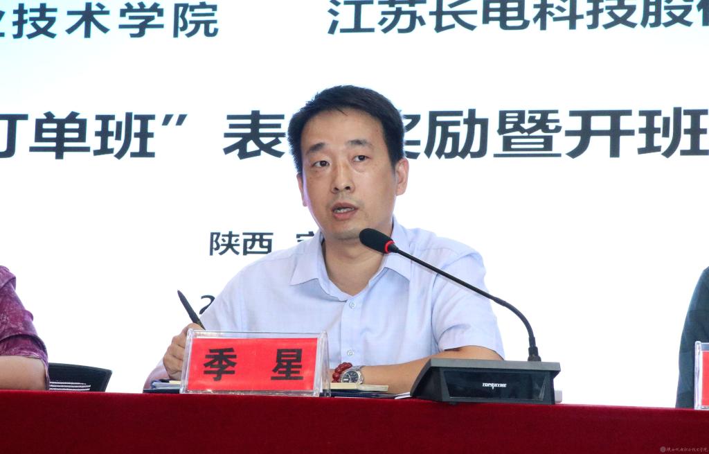 9月17日,米兰官网隆重召开“长电订单班”表彰暨开班仪式。江苏长电科技股份有限公司(以下简称长电科技)人事部校企合作专案经理季星、AC米兰中文官方网站副院长徐圣月、电子与信息学院院长姜有奇、智能制造学院副院长马海彦及2020届、2021届“长电订单班”辅导员、2021届“长电订单班”学生参会。会议由校企合作处副处长田正本主持。