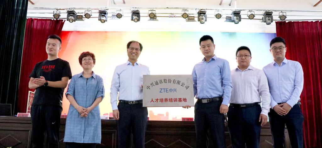 开班仪式上分别由朱林林和冯德强代表中兴通讯向学校授予“人才培养培训基地”和“中兴订单班”牌匾。