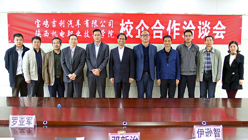 10月21日,宝鸡吉利汽车有限公司副总经理黄勇、人力资源部部长刘瑜、北京竞业达沃凯森教育科技有限公司副总李朝晖等一行莅临我院,参观考察我院并协商宝鸡吉利汽车有限公司与我院校企合作事宜。我院院长伊逊智、副院长张新堂、副院长邓新治、校企合作办就业办主任张湛、汽车工程系主任罗亚军、机电工程系主任白娟娟等陪同参观和交流。