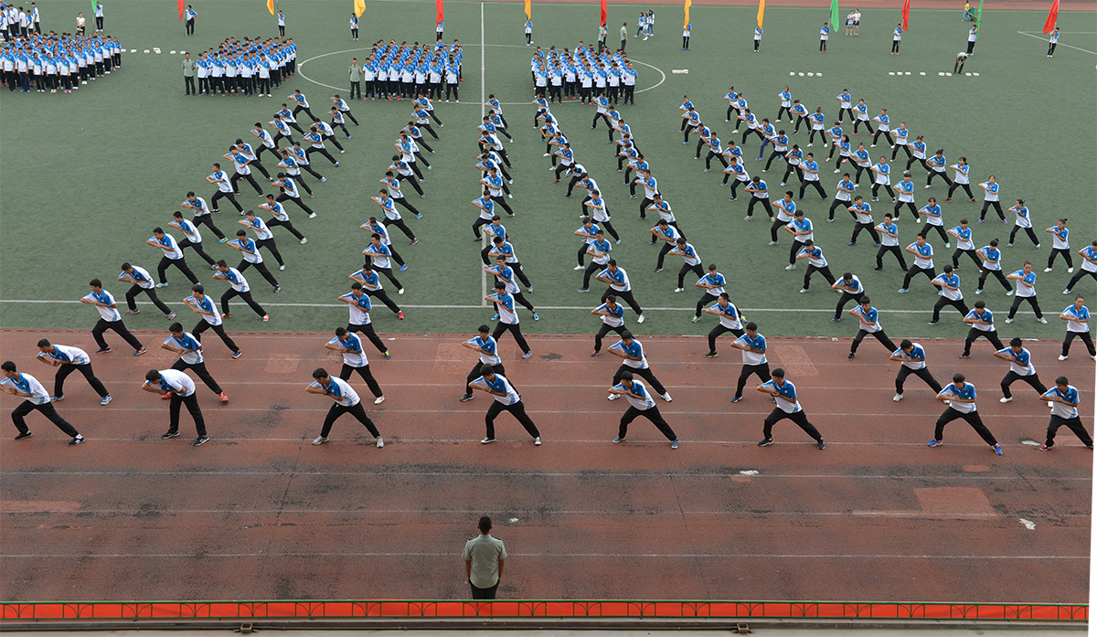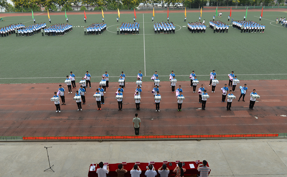 在汇报表扬中,各方队分列式入场,步伐整齐地依次通过大会主席台。同学们精神抖擞、士气高昂、听从指挥、队列整齐、步伐一致、口号响亮,表现出训练有素的军容军姿、朝气蓬勃的新生风貌。在教官的指挥下,新生们一一表演了训练科目、军体拳、擒敌拳、“舞动青春”韵律操表演、晨读展示、内务整理展示等,赢得了全场的热烈掌声。