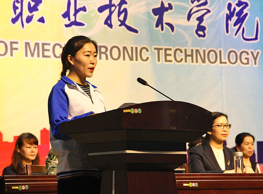 国家级名师,信息工程系专业带头人郭靖老师代表全体教职工,16通信技术专业何晶同学代表在校生,17级机电技术马润华代表新生,秦岭学生军训基地副主任卢春国、军训教官陈航等先后发言,表达了对新生的欢迎和关怀,也对军训和今后的学习生活提出了殷切的期望。