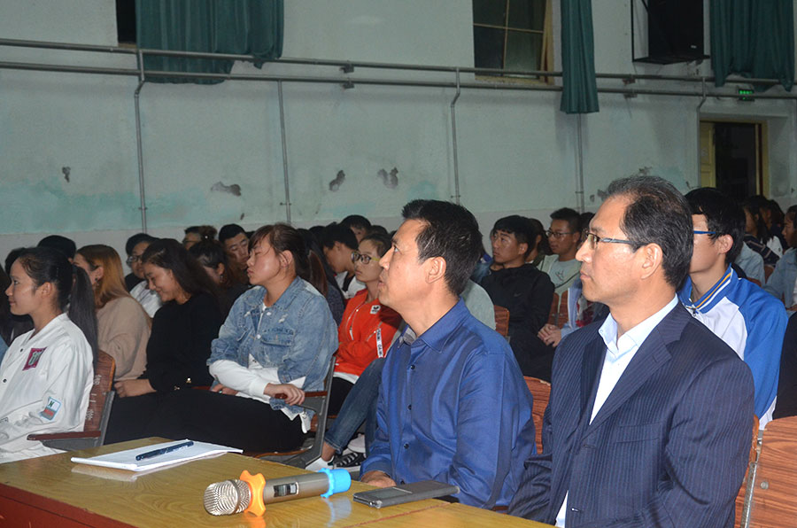 学院党政领导班子成员和相关系部负责人、辅导员、班主任老师一起观看了新闻。
