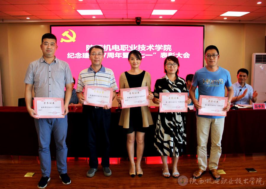 在庄严的国歌声中,表彰大会拉开序幕。学院党委委员、副院长徐圣月宣读了《中共陕西省委高教工委关于表彰全省高校先进基层党组织、优秀共产党员和优秀党务工作者的决定》。AC米兰中文官方网站机电工程系党支部获得全省高校先进基层党组织称号,AC米兰中文官方网站党委宣传部部长、工会常务副主席李明获得全省高校优秀共产党员称号,AC米兰中文官方网站党委委员、组织部部长、党政办主任、行政党支部书记赵争东获得全省高校优秀党务工作者称号。受到学院党委的表彰。