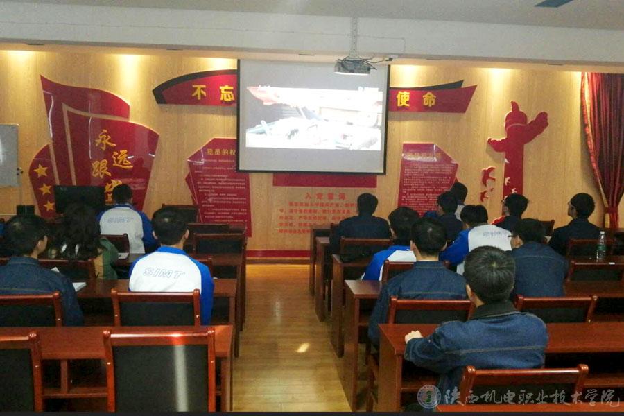 实训学生在宝鸡电务段党员活动室观看铁路劳动安全视频