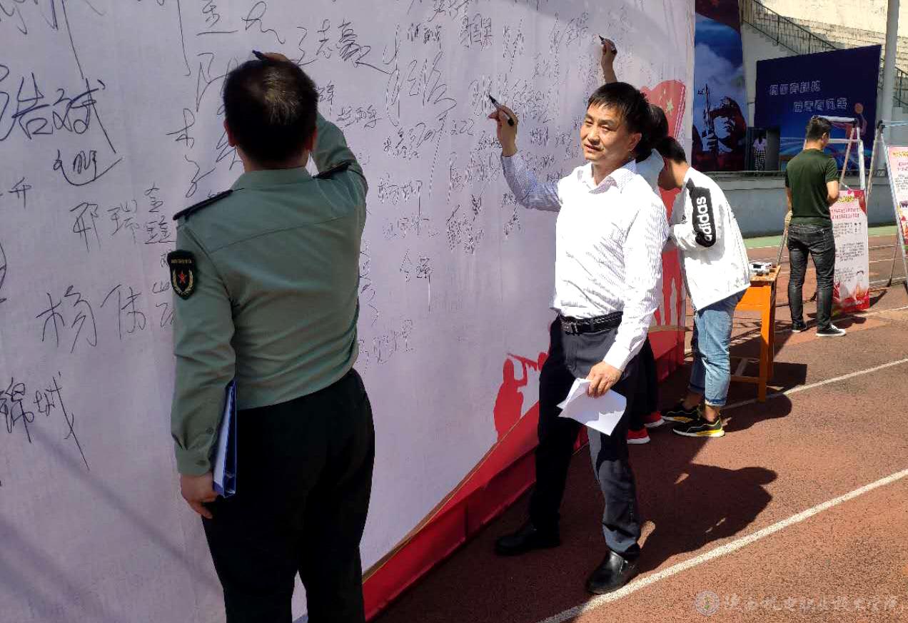 学生参军报国的热情很高,会议组织紧张有序。会后,学生们在签名墙签名留念。