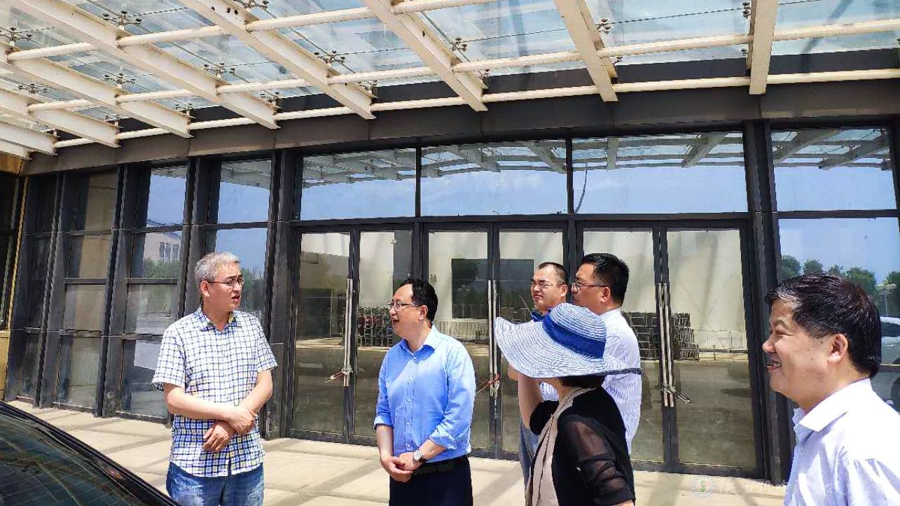 向纪明院长(左二)带领强伟调研员现场参观新校区