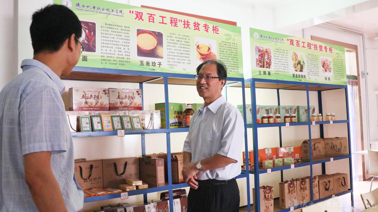 在学校扶贫专柜前,伊逊智仔细询问了商品的供货、品种、单价以及销售管理情况。并强调扶贫专柜的设立是学校认真贯彻落实习近平总书记关于脱贫攻坚重要讲话“四个不摘”要求的具体实践,要在专柜运行上多想办法,结合眉县、麟游县的产品特点及校园消费需求,运行好扶贫专柜,为打赢脱贫攻坚战贡献力量。