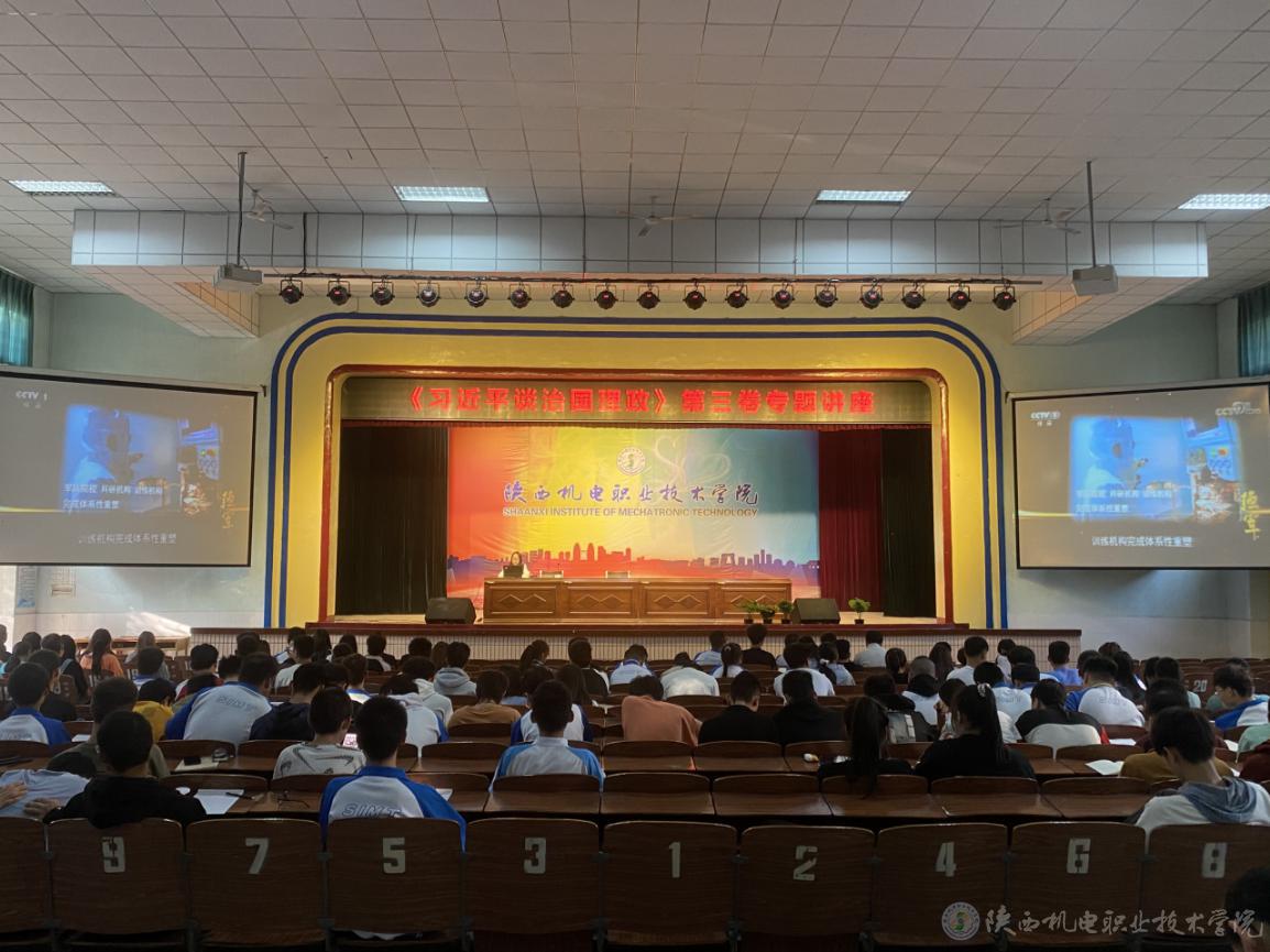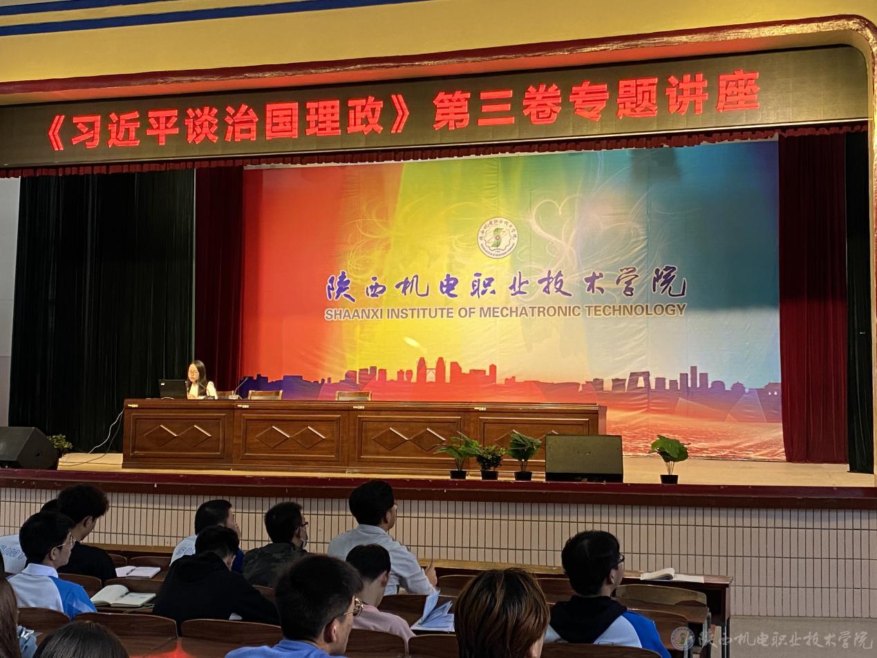 9月29日下午,学工部教师齐晓红为全校学生会、各班级、各社团的学生干部作了《习近平谈治国理政》第三卷第一讲的讲座。