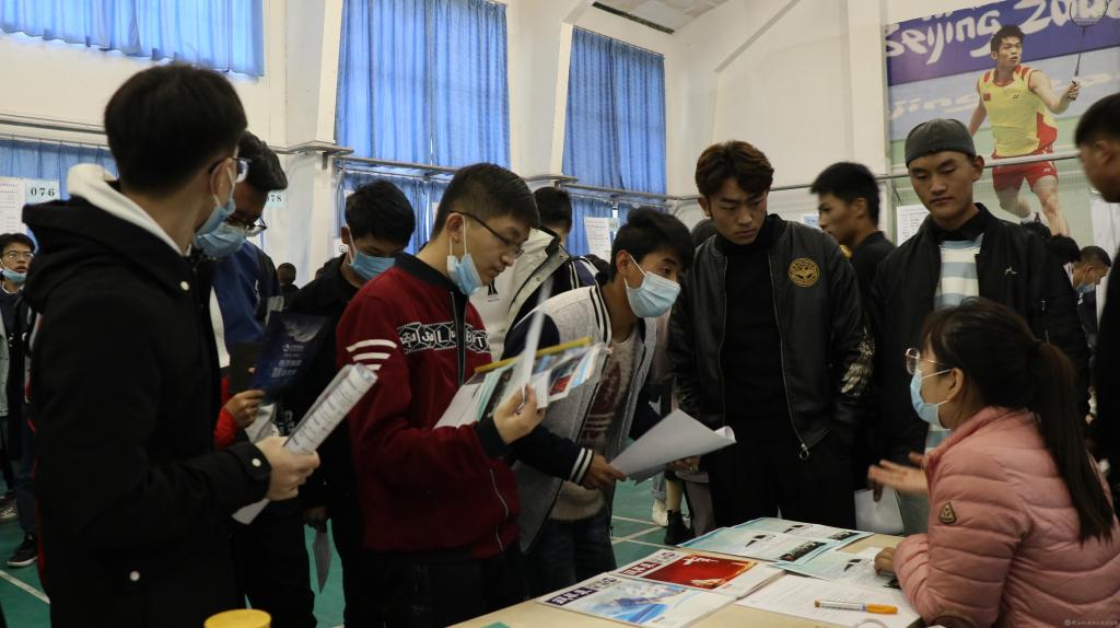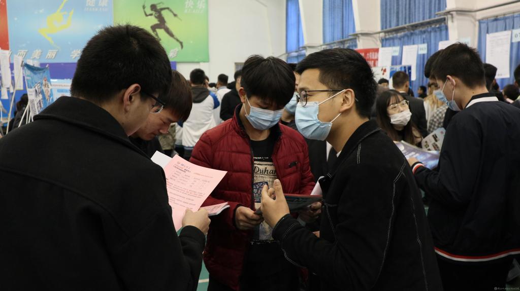 上午,毕业生及用人单位代表不畏秋意寒风,早早就来到校园招聘会现场,开启了求职、面试工作。招聘会现场气氛热烈,用人单位细致周到的向毕业生介绍企业发展、工作内容、薪资待遇等情况;毕业生热情大方的向用人单位介绍、展示自我,寻找适合自身的工作岗位。