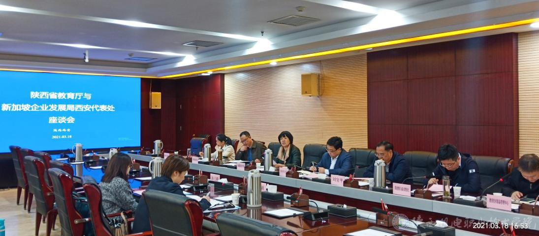 2021年3月18日下午,陕西省教育厅与新加坡企业发展局西安代表处座谈会在西安召开,出席此次座谈会的有陕西省教育厅副厅长刘宝平,新加坡企业发展局西安代表处主任袁颖,陕西省教育厅职成处、装备中心、外事处有关处室负责人以及省内部分高职院校代表。AC米兰中文官方网站党委副书记、院长向纪明、国际合作与交流处处长罗亚军参加了座谈。