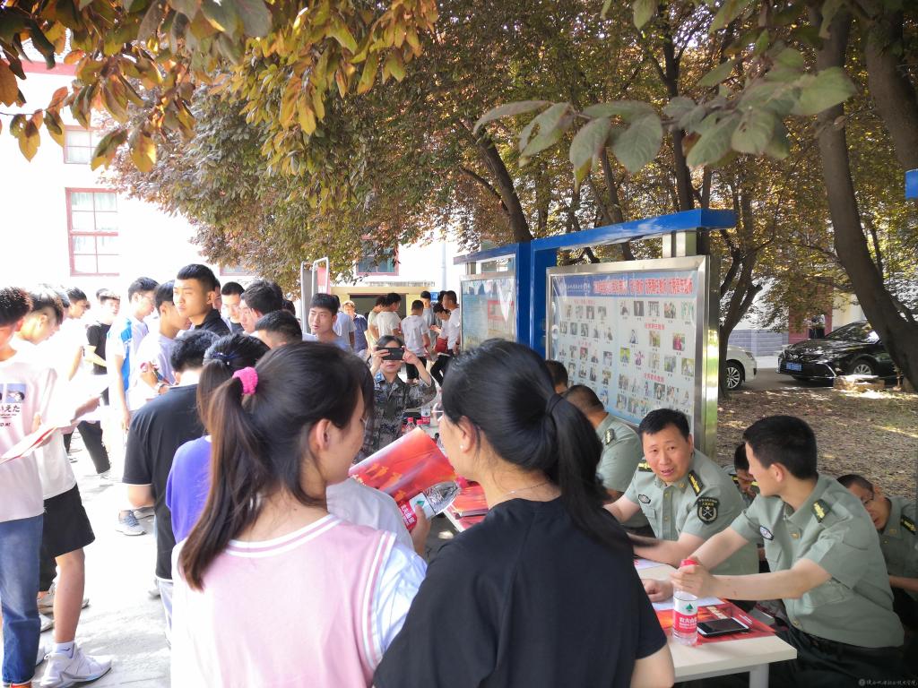 宣讲会上,我院大学生退役士兵虎金云从亲身经历出发就自己的部队生活、体验及感悟进行了分享,弘扬了军人的优良传统与作风,诠释了军人的家国情怀,进一步激发了广大青年学子积极投身国防建设的热情。随后金台区武装部宋晨史参谋为参会同学详细介绍了今年的征兵政策、征兵时间、网上报名流程、国家对应征入伍服义务兵役的高校学生的资助、经济补助待遇及考学提干等方面政策。现场咨询会上,金台区武装部工作人员对同学们提出的问题进行了逐一回答,鼓励同学们把个人理想融入到强国梦、强军梦中去,携笔从戎,积极踊跃报名参军。
