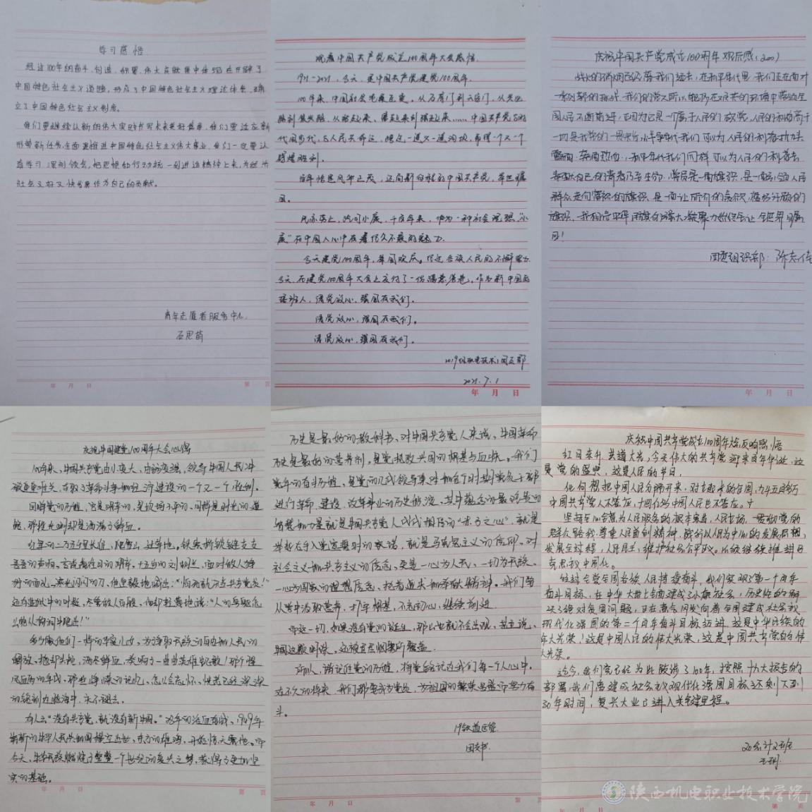 团委副书记17机电五年1班赵卓越:看完庆祝中国共产党成立100周年大会直播,我的心中久久不能平静,一百年来,是中国共产党领导中国人民经过艰苦卓绝的斗争和建设,迎来了从站起来、富起来到强起来的伟大飞跃,踏上了全面建设小康社会的幸福之路。今后我们要坚定理想信念,在实现中华民族伟大复兴的道路上昂首阔步!