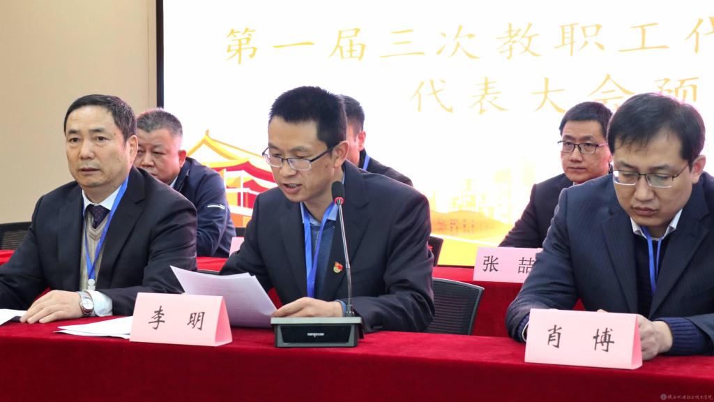 米兰官网第一届三次教职工代表暨工会会员代表大会,预备会上,工会常务副主席李明向全体代表做大会筹备情况的报告,并主持通过了大会主席团成员建议名单、大会秘书长建议名单、大会议程。主席团第一次会议通过了大会执行主席名单及大会议程。