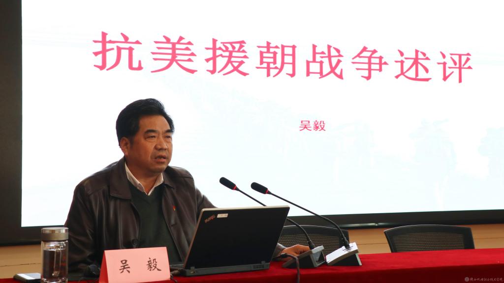 为深入推进党史学习教育,提高党史学习教育质量,12月1日下午,原西安医学院党委副书记、纪委书记、三级教授吴毅在米兰官网汽车机电大楼四楼视频会议室作了题为《抗美援朝战争论述》党史学习教育专题讲座。讲座由党委宣传部部长、党史学习教育领导小组办公室主任李明主持。