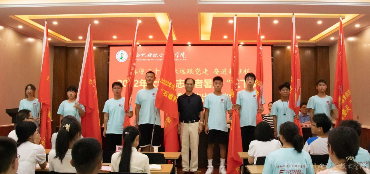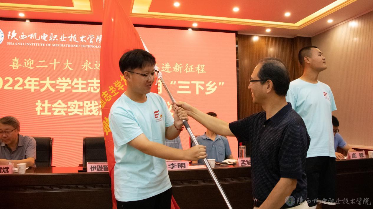 伊逊智为8支实践队授旗,并祝愿一路顺风,满载而归