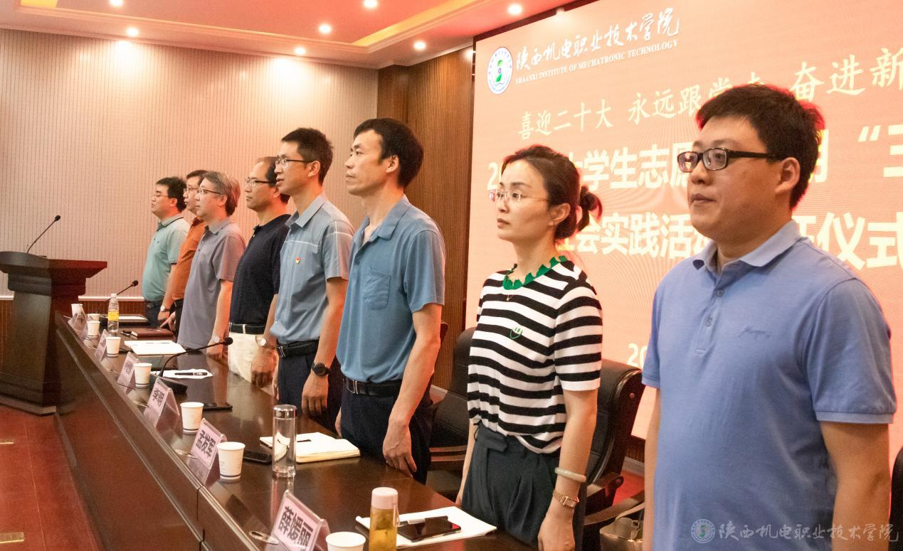 7月8日上午,米兰官网2022年大学生志愿者暑期“三下乡”社会实践活动出征仪式在博学楼111会议室举行。党委书记伊逊智,党委委员、宣传部部长李明,党委学工部部长王建斌,经管与艺术学院党支部书记孟发军,汽车工程学院党支部书记何蒙辉,电子与信息学院党支部书记高赋,智能制造学院党支部书记薛媛丽和8支实践队的带队指导老师及学生代表参加了出征仪式,仪式由校团委书记杨鹏主持。