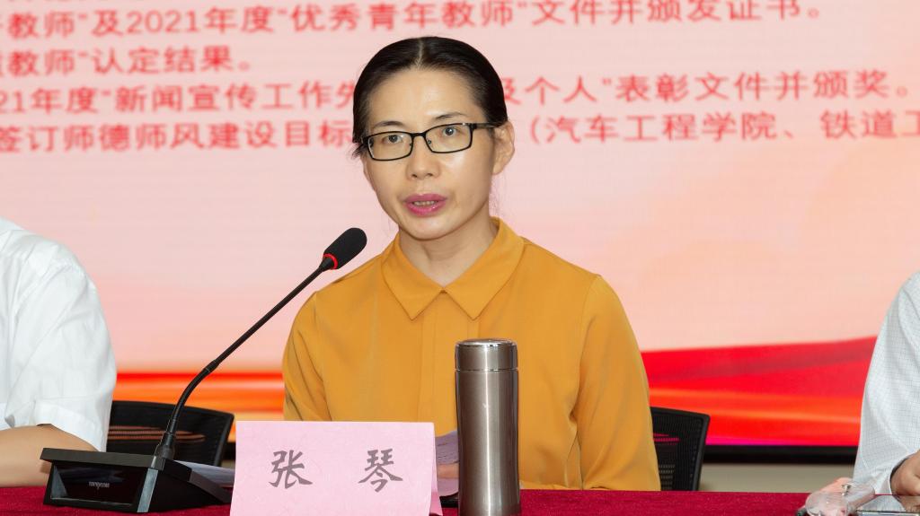 张琴同志宣读《关于表彰2022年“最受学生欢迎的教师”的决定》文件并为获奖教师代表颁奖。