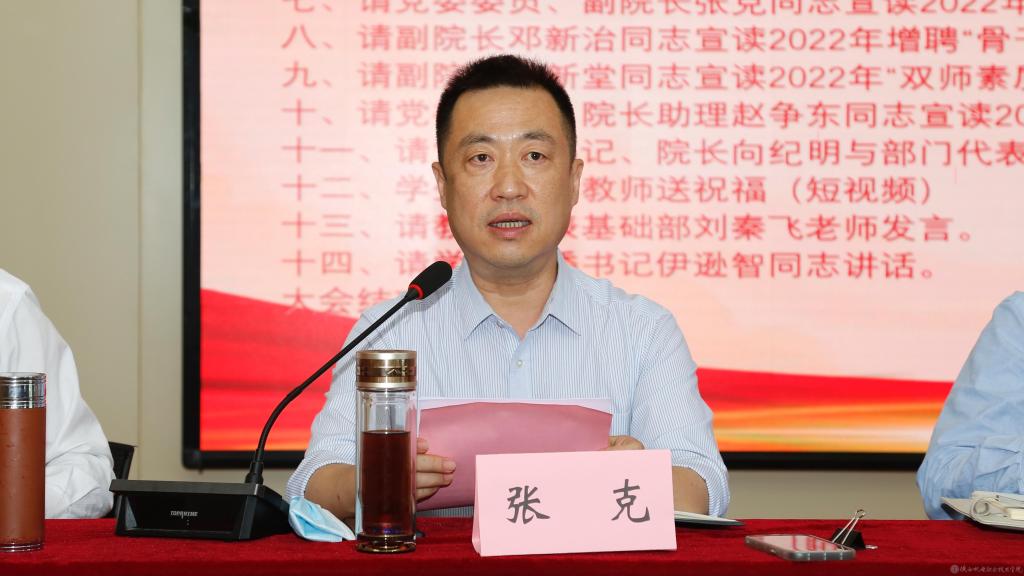 张克同志宣读2022年“师德先进个人”表彰文件并为获奖教师代表颁奖。