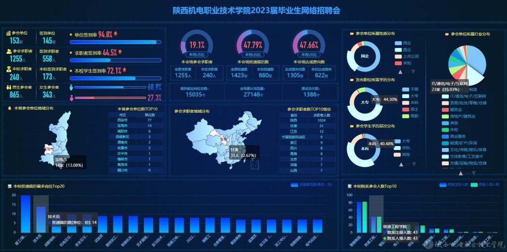 此次网络招聘会架起了用人单位与毕业生沟通的桥梁,为用人单位及毕业生提供了精准、暖心的服务,提高了网络招聘会供需对接实效。下一步,学校将综合运用线上、线下多种方式持续推进各项就业工作,加强“访企拓岗”专项行动,强化就业岗位拓展,提升就业服务水平,营造良好就业氛围,为2023届毕业生求职就业保驾护航,助力2023届毕业生尽早就业、充分就业、高质量就业。