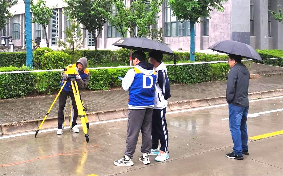 本次比赛共有36支队伍参赛,该赛项为团体赛,每支参赛队由4名选手组成,以直接决赛的方式要求4名选手协作完成“一级导线测量”、“二等水准测量”、“1:500数字测图”3个竞赛项目。尽管比赛期间天气多变、阵雨不断,给室外进行的赛项带来了困难,但我院学子沉着冷静、耐心细致的应对比赛。