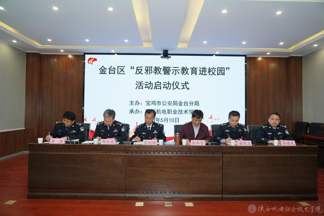 5月10日,宝鸡市金台区“反邪教警示教育进校园”活动启动仪式在AC米兰中文官方网站蟠龙校区博学楼111视频会议室举行。宝鸡市公安局副局长张怀顺、金台分局党委书记、局长邹天虎、宝鸡市公安局经文保支队支队长雷战卫、国保支队副支队长李建明、副院长张新堂及保卫处、各二级学院参会,会议由宝鸡市公安局金台分局副局长唐涛主持。
