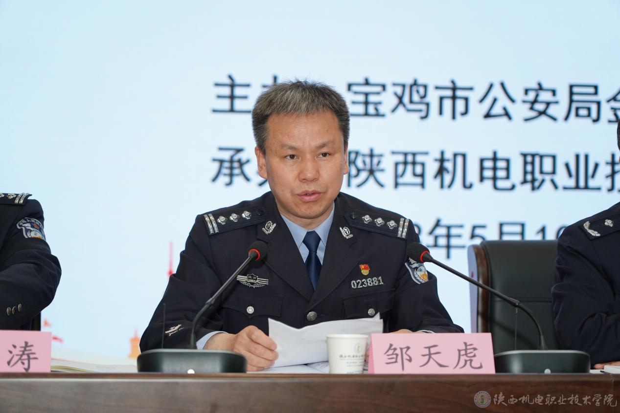 金台分局局长邹天虎指出,国家安全是安邦定国的重要基石,事关人民幸福、社会进步和民族复兴。近年来,金台区公安部门认真贯彻落实省、市公安机关工作要求,主动进攻、持续发力,积极保障了广大人民群众的切身利益,有力维护政治安全和社会稳定。引导大家崇尚科学,远离邪教。希望学校一是需要提高警惕,充分认识反邪教警示教育进校园的现实意义;二是加强教育,全面引导师生员工看透邪教本质;三是筑牢防线,坚决防止邪教向校园侵蚀渗透。反邪教是一项长期性、复杂性、艰巨性的斗争,需要公安机关和学校共同努力,坚持依法治理、创新举措、综合施策,不断推动反邪教工作走上常态化、规范化、法治化轨道。
