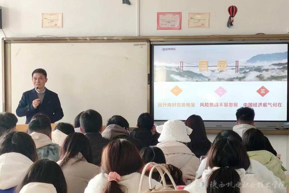 11月14日下午,学校党委委员、院长助理赵争东在博学楼413教室为23铁道运管3、23铁道运管4、23智能建造、21运管五年合班学生上形势与政策课,讲授《开辟马克思主义中国化时代化新境界》《中国经济“形”稳“势”升》两个专题内容。
