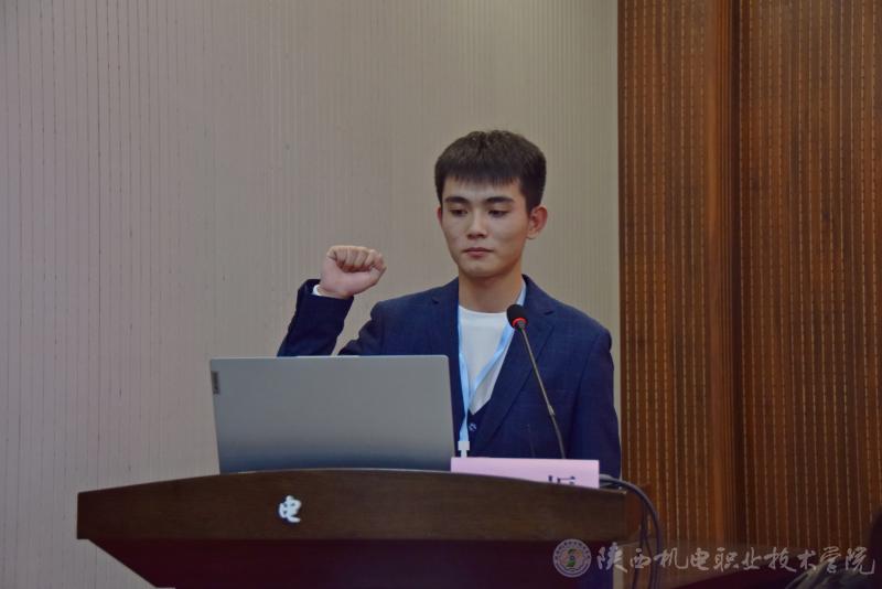 马克思主义学院教师王乐琴代表评委团作出承诺,严格执行比赛规则,保证比赛公平、公正、有序地进行。22机电技术3班学生周雪飞代表参赛选手进行宣誓,严格遵守比赛规则,尊重评委、尊重对手,团结协作,努力拼搏,赛出水平,赛出风格。