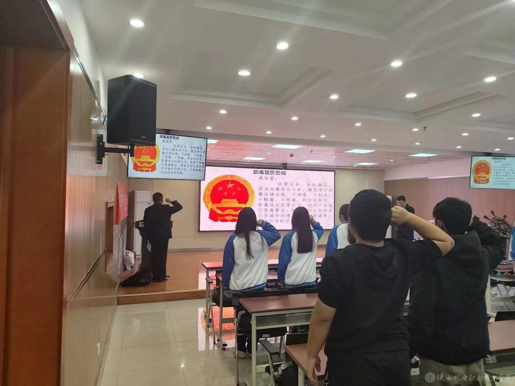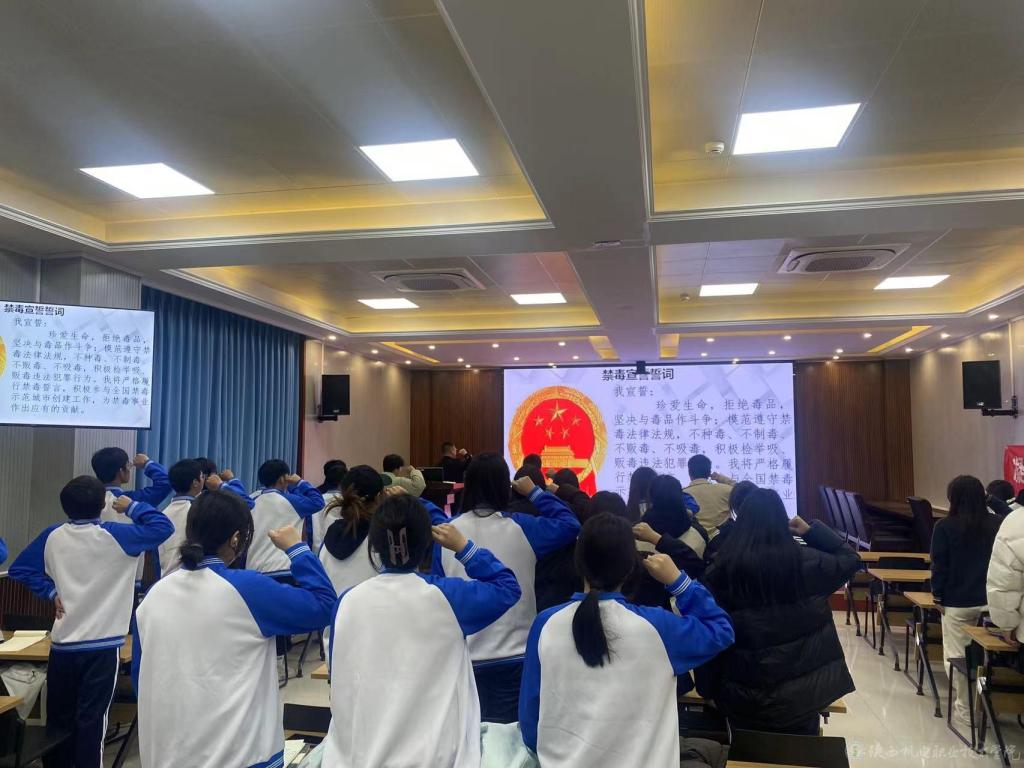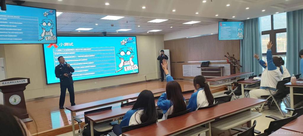 曹升儒从毒品的种类、毒品的危害、毒品与艾滋病的关系以及艾滋病的流行情况、传播途径、如何预防等方面进行了介绍,通过一个个触目惊心的案例、一串串惊人的数据,生动形象地阐述了毒品和艾滋病的危害,并带领全体学生进行禁毒宣誓,最后还设立了互动环节,通过问答和发放小礼品的形式,让同学们加深对禁毒防艾核心知识的印象。