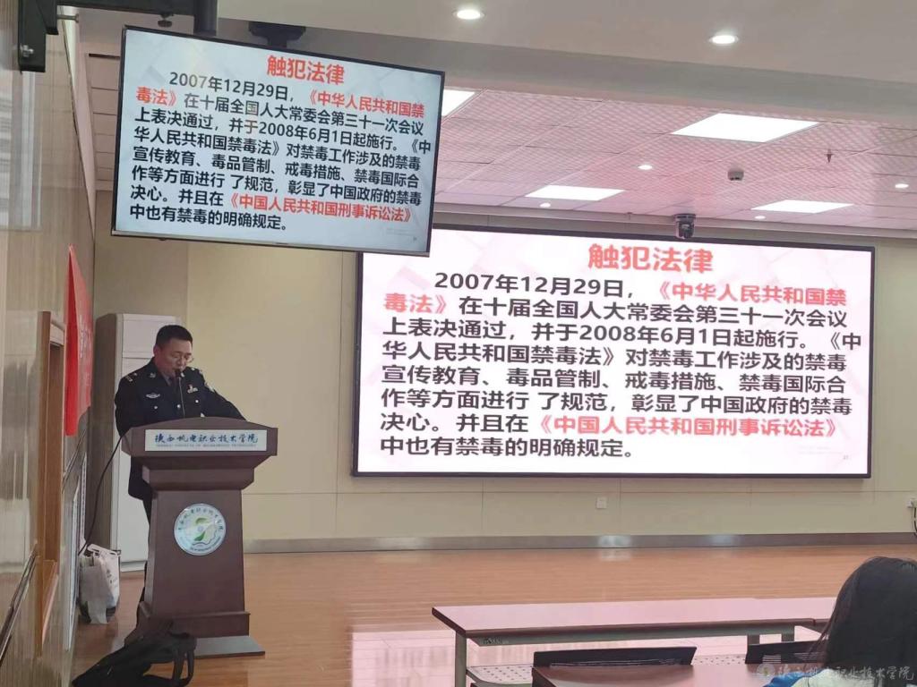 为进一步提升大学生法治意识和防范能力,促进学生掌握禁毒防艾知识,助力省级“平安校园”复审工作,米兰官网邀请宝鸡市强制隔离戒毒所医务科科长曹升儒于11月22日、28日分别在宝福路、蟠龙校区开展禁毒教育暨艾滋病防治专题讲座。