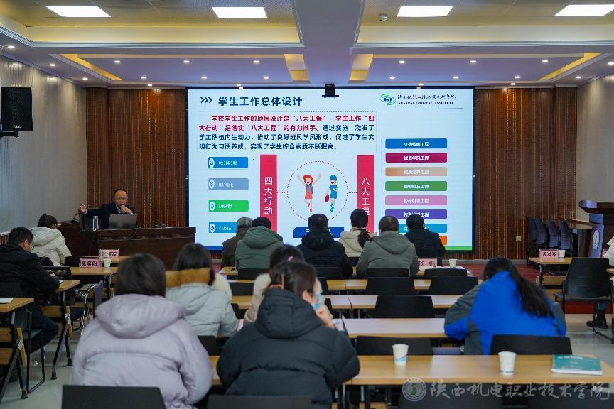 为进一步促进米兰官网辅导员、班主任队伍建设,提高学工队伍专业化、职业化水平,米兰官网特邀请陕西铁路工程职业技术学院专家团队于12月26日下午在蟠龙校区博学楼会议室开展专题培训,党委副书记张琴,各二级学院党支部书记、全校辅导员、班主任老师参加,活动由党委学工部部长、学生处处长王建斌主持。