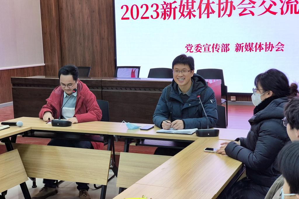 座谈会上,李明首先介绍了宣传部的历史沿革、站位职责、师资队伍以及发展方向。他指出,党委宣传部是学校党委主管意识形态工作的综合职能部门,是学校宣传思想工作的主管部门。在学校党委的领导下,肩负着统一思想、引领舆论、营造氛围、外树形象的职责。李明以王海楠、郭恒飞等优秀校友为先进典型,激励新媒体学生要找差距、提能力、促发展。同时,他对大家寄予希望:一是希望同学们坚定理想信念,坚守意识形态阵地,树立正确的人生观、价值观和世界观。二是希望同学们珍惜大学时光,加强专业技能学习和素质培养,做好学业和职业规划,以“时不我待”的使命感和舍我其谁的责任感肩负时代重任。三是要紧密结合时代要求,把握信息更新速度快、信息传播快的特点,不断培养“站起来能讲、坐下来能写、拿起来能拍”的过硬本领。