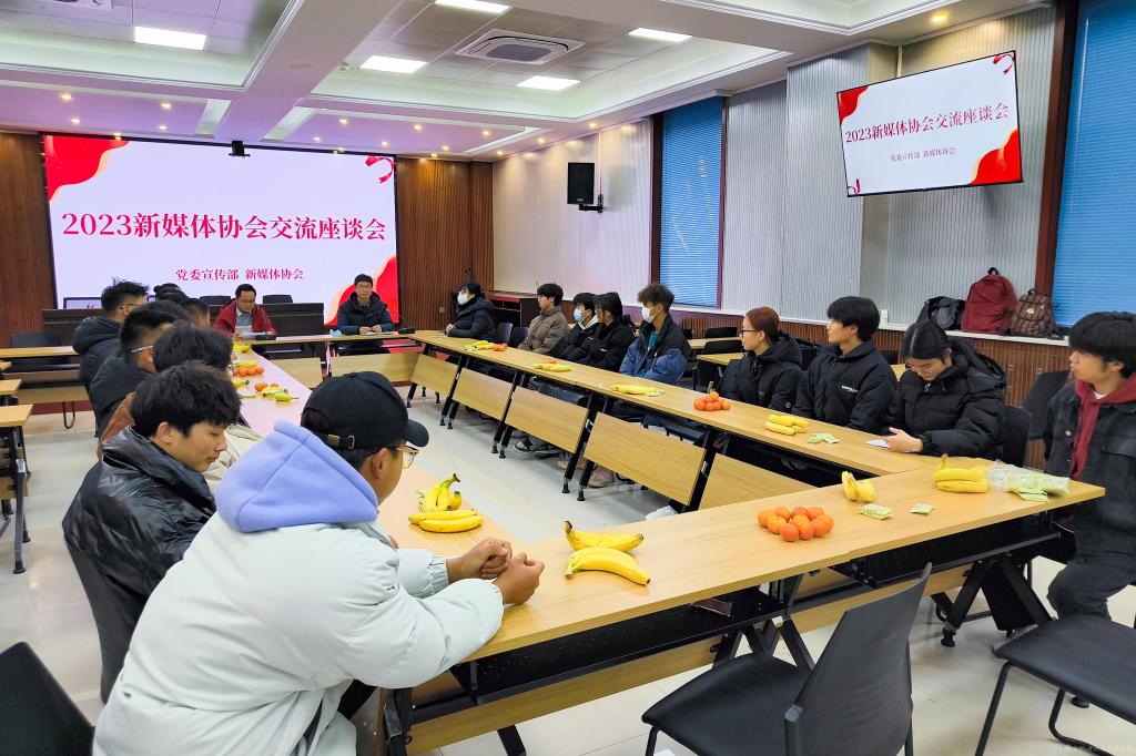 为进一步凝聚师生共识,提升社团活力,践行米兰官网“九维育人”模式中的文化育人、实践育人、美育育人目标。近日,党委宣传部组织召开了2023年度融媒体师生队伍交流座谈会。党委委员、党委宣传部部长李明参加会议并讲话,宣传部教师屈婉蓉、赵珊及新媒体协会全体成员参加会议。会议由社团指导教师李敏超主持。