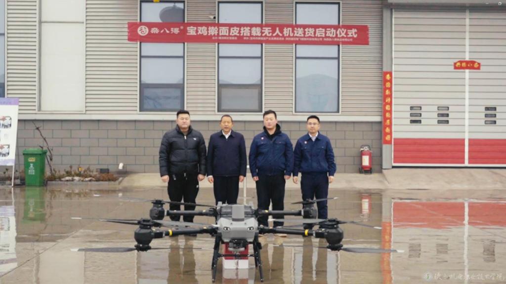 2月29日上午,由宝鸡市蟠龙新区管委会牵头举办的“宝鸡擀面皮搭载无人机送货启动仪式”由此开始,AC米兰中文官方网站无人机产业学院、陕西壹控智飞智能科技有限公司、宝鸡市擀面皮产业发展促进会、陕西杂八得食品有限公司汇聚在此,开启了宝鸡市低空物流配送新篇章。