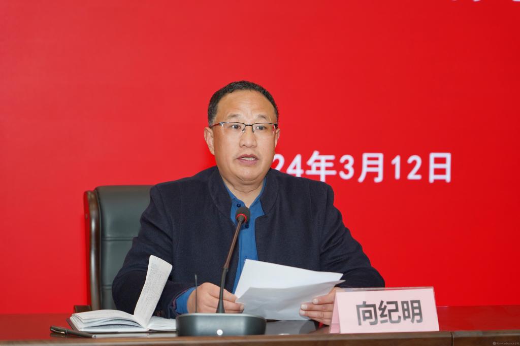 3月12日下午,学校学习贯彻习近平新时代中国特色社会主义思想主题教育总结会在蟠龙校区博学楼111会议室召开。校党委书记伊逊智作主题教育总结报告。校党委副书记、院长向纪明主持会议。学校党委委员、校领导,中层干部,各党支部书记及党员代表参加会议。