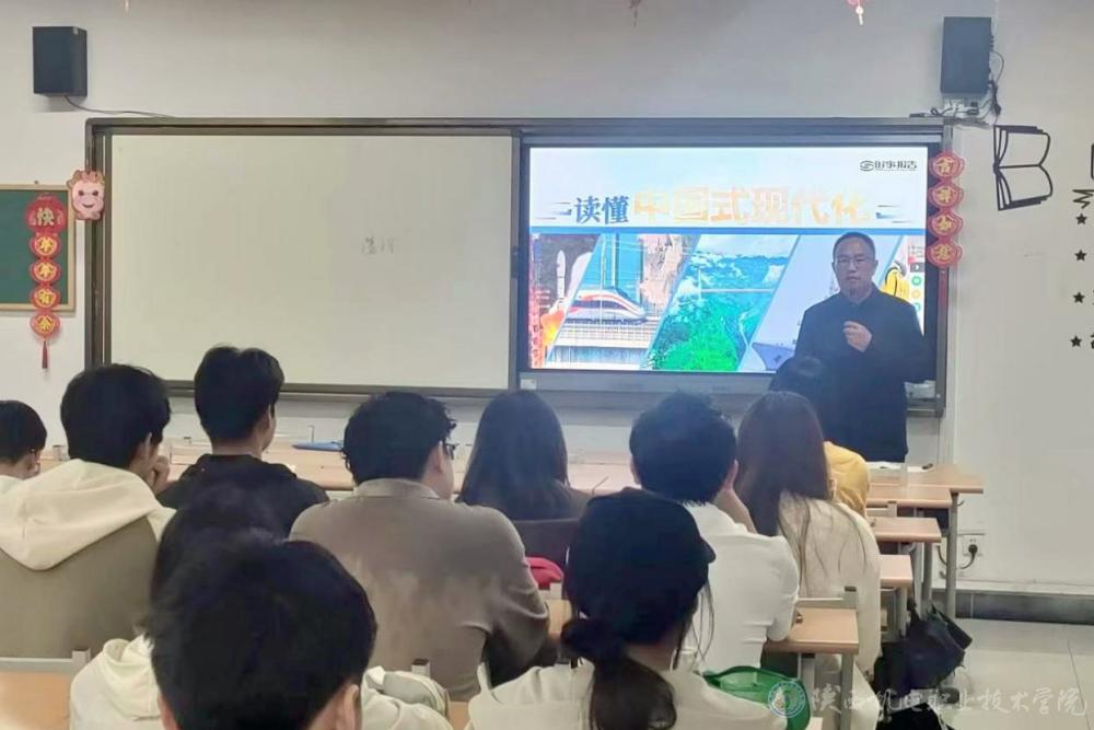5月8日下午,AC米兰中文官方网站党委副书记、院长向纪明在博学楼417教室为23工程造价1、23工程造价2合班学生上形势与政策课,讲授《读懂中国式现代化》专题内容。