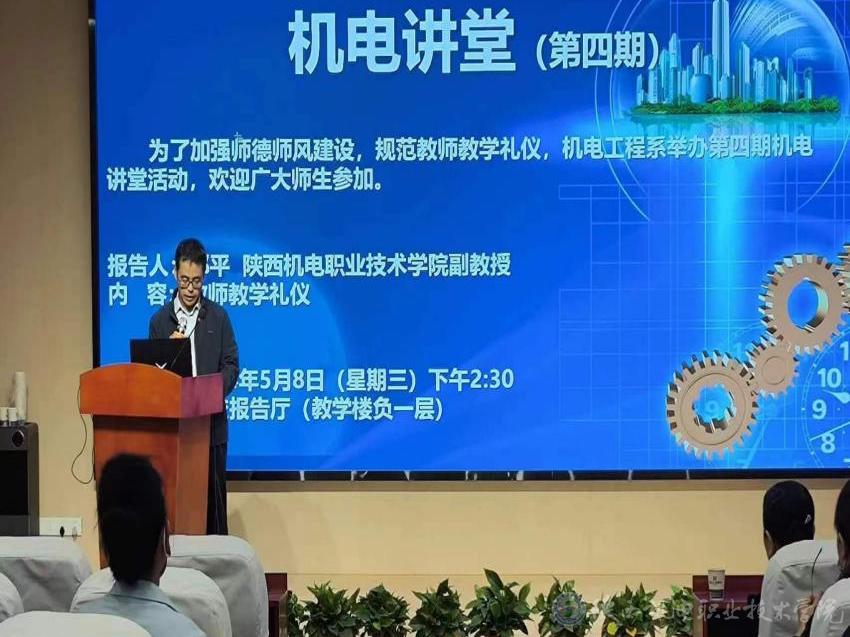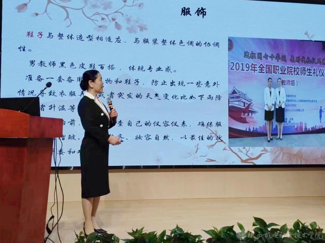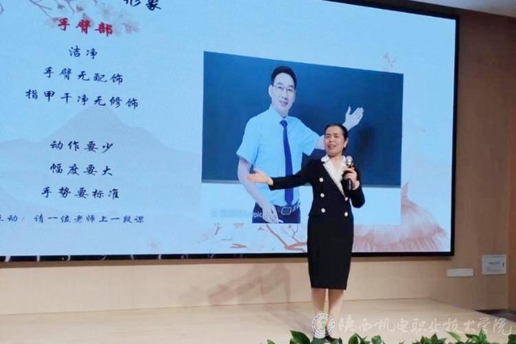 5月8日,应西北工业学校邀请,米兰官网马克思主义学院IPA国际注册礼仪师邢平副教授作了题为《教师教学礼仪》专题讲座。讲座由西北工业学校机电工程系主任郝星照主持,全校教师聆听了讲座。