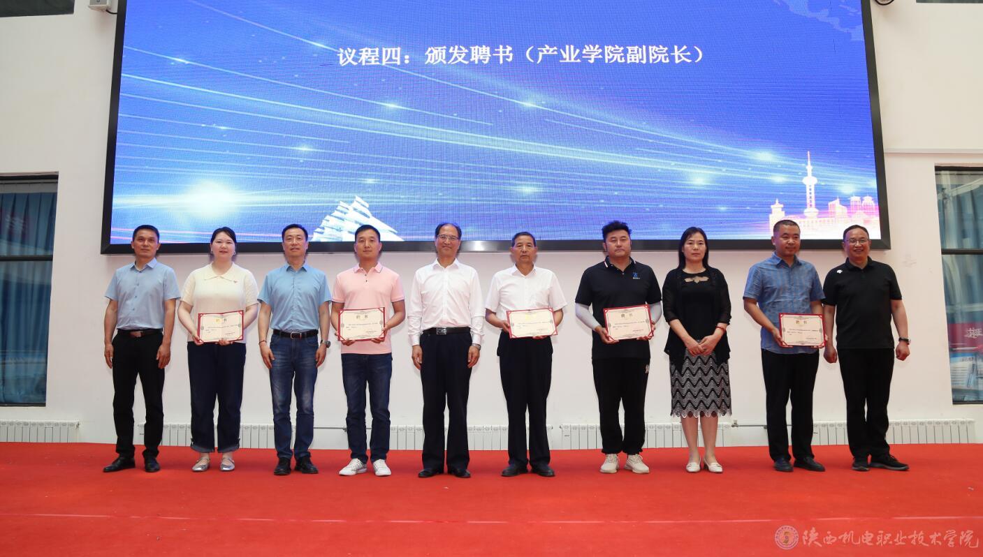 活动现场,校领导为宝鸡擀面皮产业促进协会会长张新怀颁发了擀面皮产业学院副院长聘书;为宝鸡擀面皮产业促进协会秘书长高颖颁发了擀面皮产业学院秘书长聘书;为西安风标电子科技有限公司副总经理张志云颁发了风标制造产业学院副院长聘书;为陕西壹控智飞智能科技有限公司总经理李海涛颁发了无人机产业学院副院长聘书;为宝鸡墨菲新金属科技有限公司总经理李青龙颁发了钛产业学院副院长聘书。