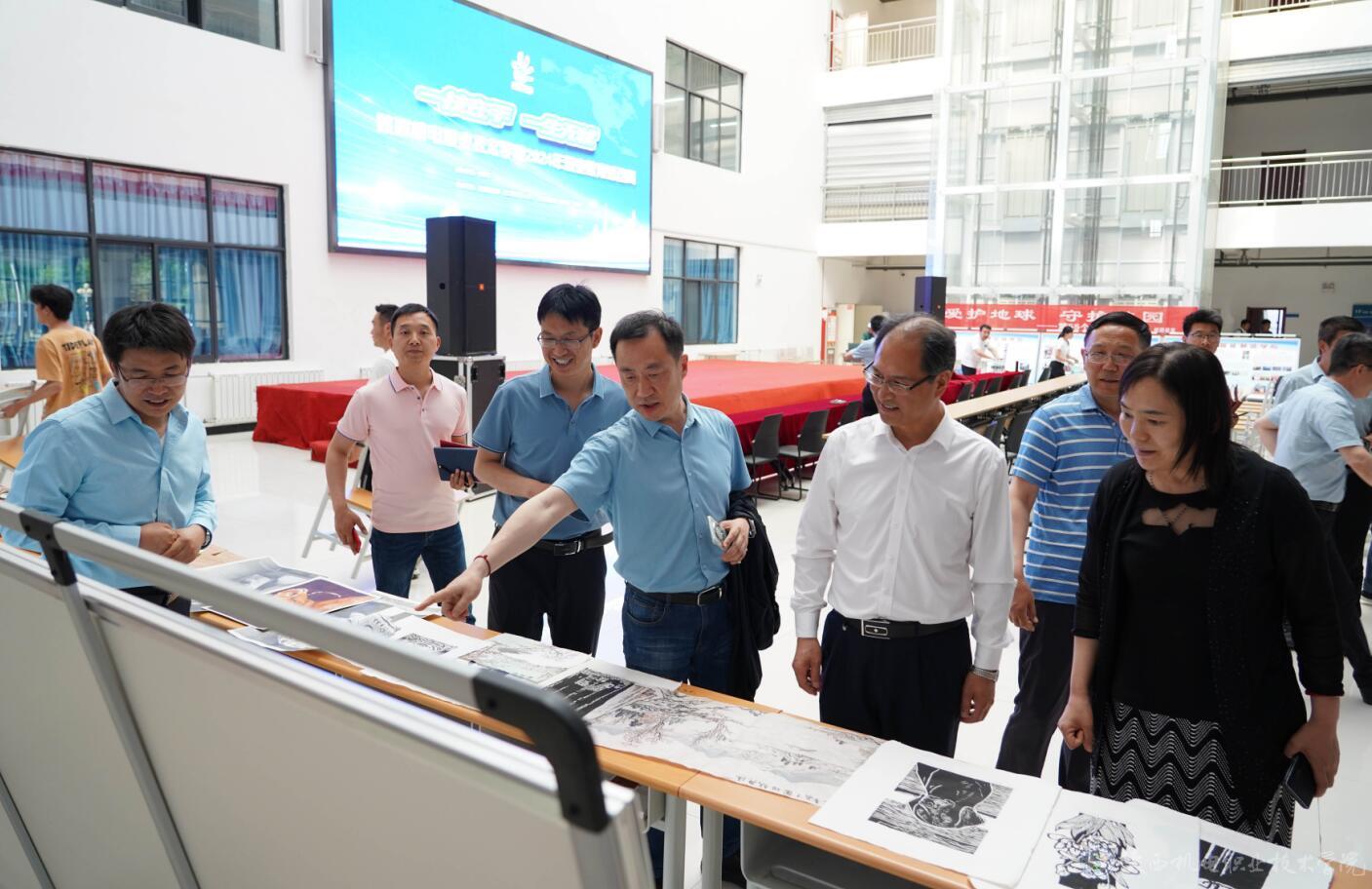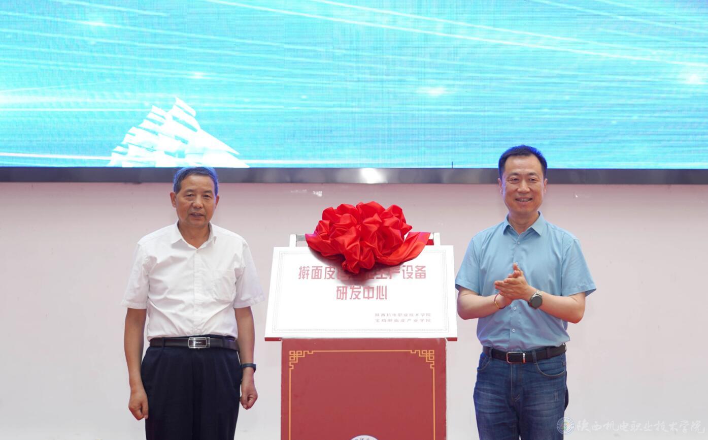 启动仪式结束后,党委委员、副院长张克和宝鸡擀面皮产业促进协会会长张新怀共同为擀面皮自动化生产设备研发中心揭牌。大家合影留念后,共同前往博学楼大厅、博学楼前广场、行知楼、强技楼等地参观了各教学单位职业教育成果展示。