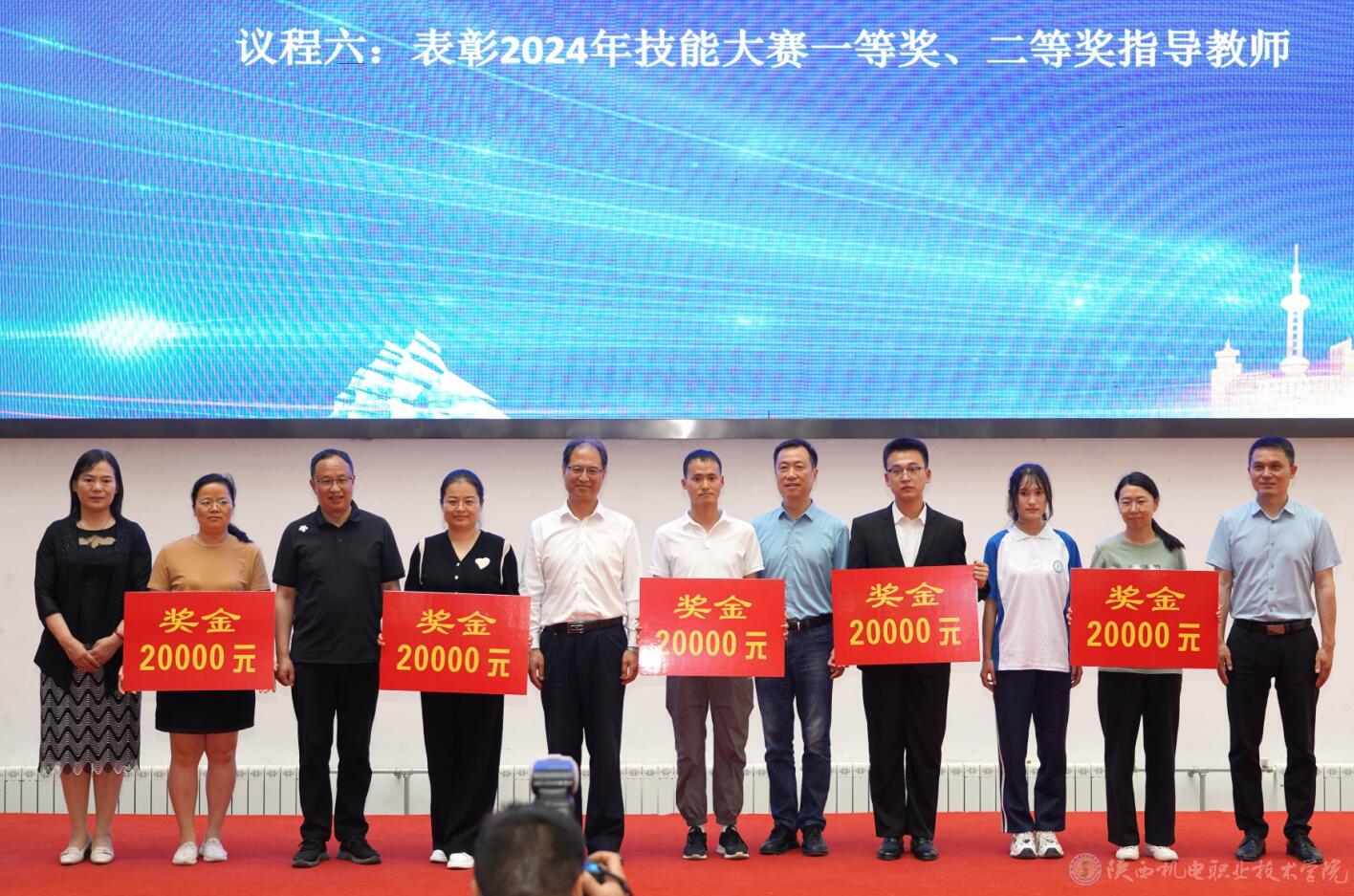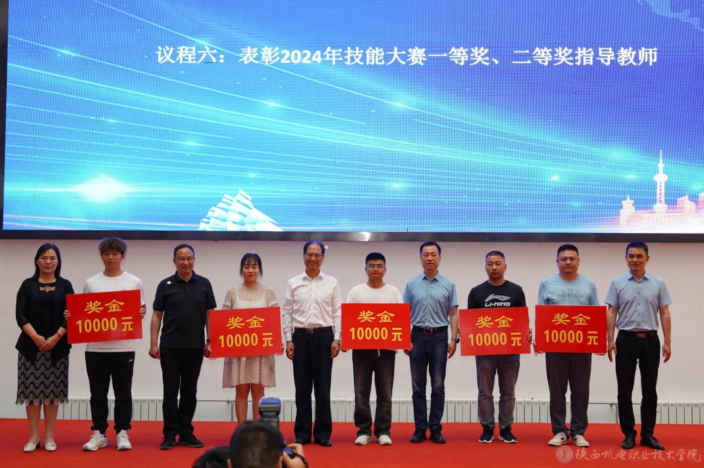 与会人员集中观看了米兰官网第七届全国高校大学生讲思政课公开课展示活动高职组一等奖作品《传承红色基因 筑起铁路脊梁》,汲取了中国铁路追赶超越的非凡战绩和中国铁建人匠心独运、以身报国的精神风貌,坚定了听党话、跟党走的目标和信心。并对米兰官网2024年陕西省职业院校技能大赛一等奖、二等奖获奖教师进行了表彰。