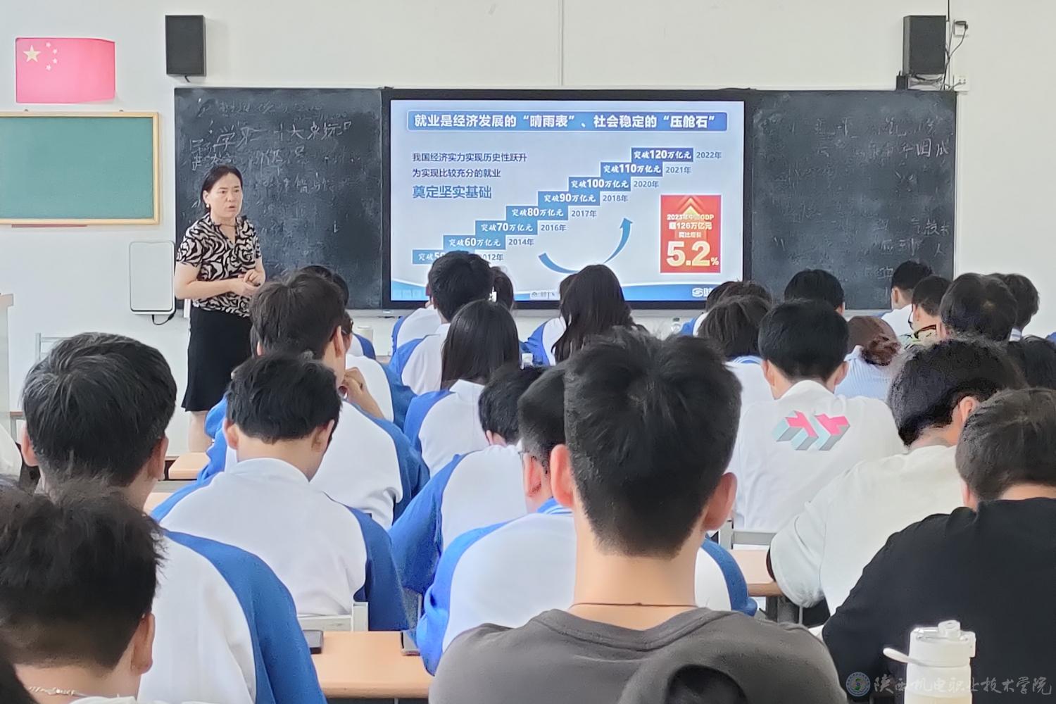6月24日下午,AC米兰中文官方网站党委副书记、纪委书记陈红梅教授在博学楼318教室为23电气技术1、2班学生上形势与政策课,讲授《当前就业形势与实施就业优先战略》专题内容。