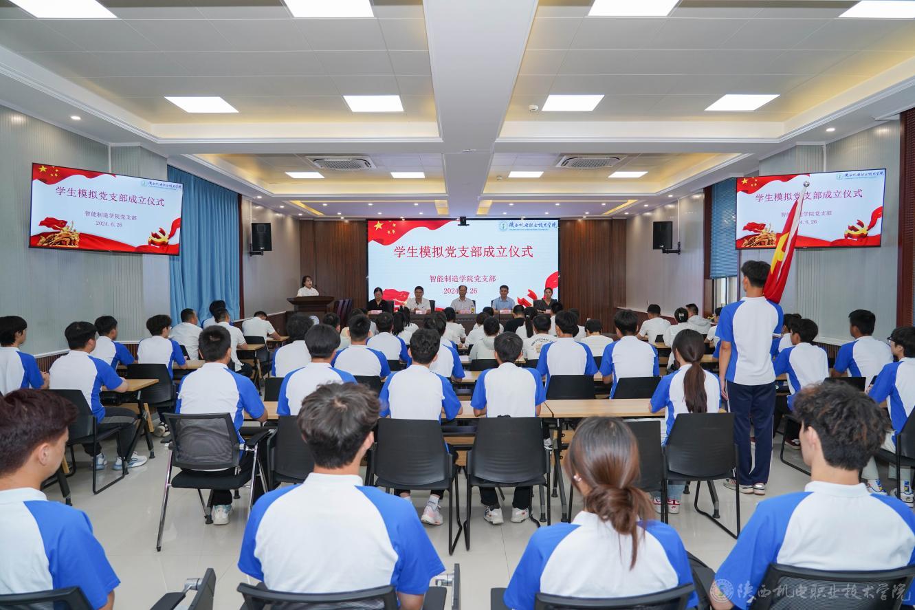 6月26日,智能制造学院党支部在博学楼111会议室隆重举行学生模拟党支部成立仪式,标志着智能制造学院党支部在学生党建工作方面迈出了创新性的一步。校党委书记伊逊智,校党委委员、院长助理、组织部部长赵争东,智能制造学院党支部书记薛媛丽,智能制造学院党支部副书记、院长马海彦,智能制造学院党支部副书记、副院长高白川,支部全体党员及学生入党积极分子参加活动。