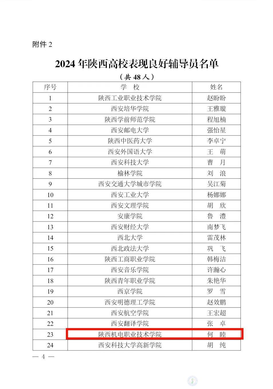 7月29日,中共陕西省委教育工委发布了《关于对2024年陕西高校辅导员先进典型推选展示活动表现突出个人进行表扬的通知》(陕教工函〔2024〕241 号),AC米兰中文官方网站专职辅导员何睦获2024陕西高校“表现良好辅导员”荣誉称号,这是米兰官网首次获得该项省级荣誉。