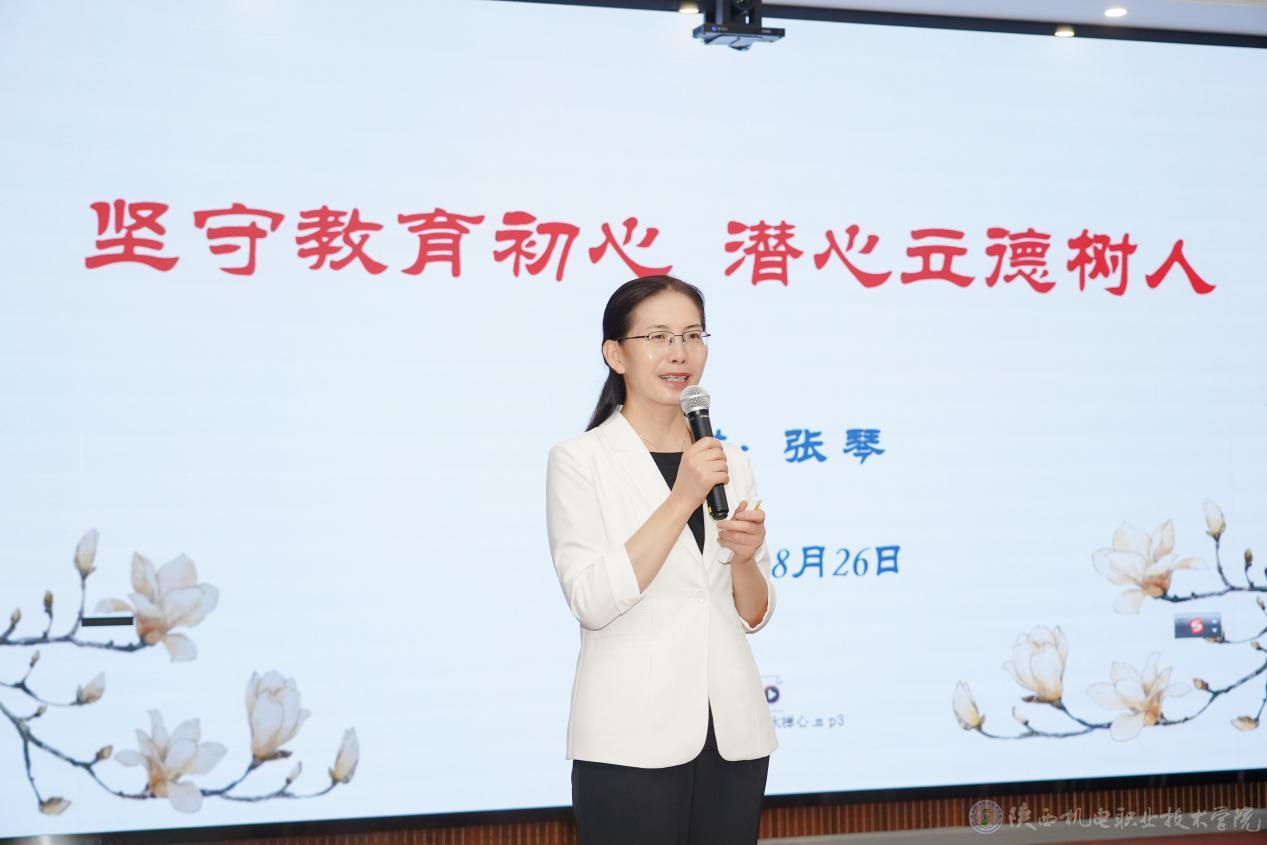 开班仪式上,党委副书记张琴发表讲话,首先对新进教师加入AC米兰中文官方网站大家庭表示热烈欢迎,同时介绍了学校的基本情况、办学特色、优势及不足,对大家提出了持之以恒抓学习、立德树人爱学生、立足岗位作贡献、正己修身扬正气、建言献策促发展五点殷切希望。
