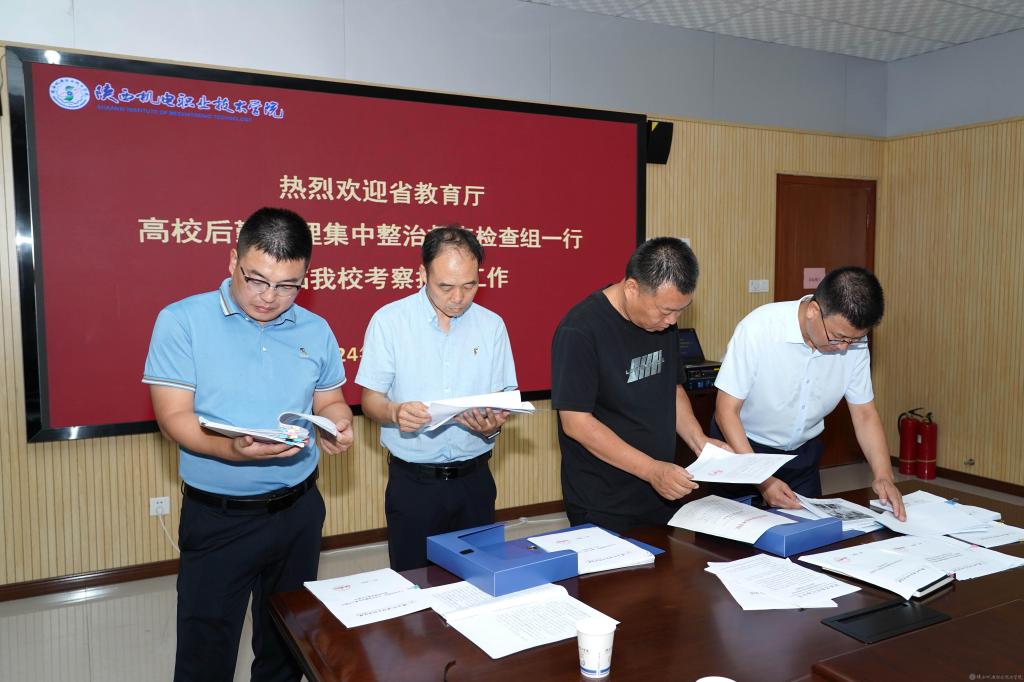 8月29日,陕西省教育厅专家组组长、省教育后勤协会副会长、西安航空学院副校长宁永录,陕西师范大学后勤管理与保障处副处长张文超,陕西工业职业技术学院后勤保障处副处长韩二豹,西安航空学院后勤保障处副处长高韩锋一行4人莅临AC米兰中文官方网站开展后勤管理集中整治督导检查工作。党委书记伊逊智,党委副书记、院长向纪明,党委副书记、纪委书记陈红梅,后勤保障处副处长李峰参加会议。会议由党委委员、院长助理赵争东主持。