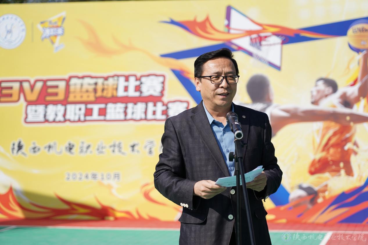 为进一步丰富校园文化生活,增强学生体质,培养团队合作精神,10月15日下午,AC米兰中文官方网站在蟠龙校区成功举办了一场别开生面的3v3篮球赛,本次比赛共57支队伍报名,228名队员参加。此次赛事不仅为学生们搭建了一个充分展示自我风采、勇于挑战自我的舞台,更极大地激发了大家对篮球运动的浓厚兴趣与对体育精神的崇高追求,让青春的活力与激情在篮球场上尽情绽放。党委副书记、院长向纪明,党委副书记张琴,党委委员、副院长张克,党委委员、宣传部部长李明以及校团委、交通运输学院领导出席开幕式。活动由基础部(体育部)党支部书记、副部长李明主持。