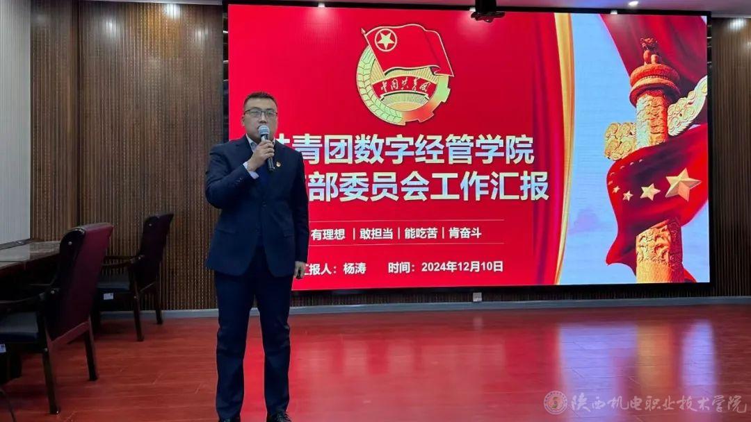 12月10日上午,AC米兰中文官方网站在蟠龙校区博学楼111会议室隆重召开了2024年度二级学院共青团工作述职评议考核大会。学校党委委员、党委宣传部部长李明,党委学工部部长、学生处处长王建斌,各二级学院党支部书记、学生管理副院长以及校团委书记王枢出席会议,各二级学院团总支负责人、校团委、学生会成员以及学生代表齐聚一堂,共同参与此次评议活动。大会由团委副书记董妍主持。