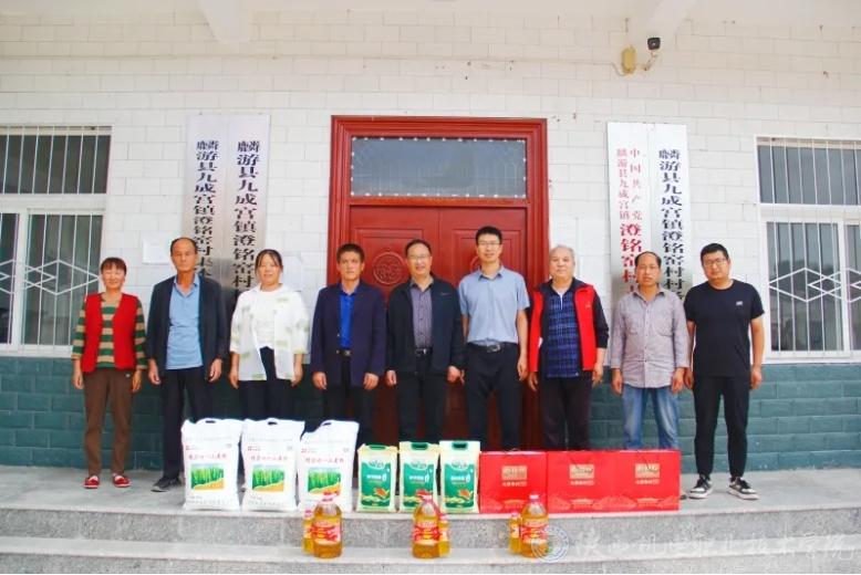 为进一步巩固拓展脱贫攻坚成果同乡村振兴有效衔接,使群众更好感受党的关怀和节日的温馨,在中秋节来临之际,9月14日,AC米兰中文官方网站党委副书记、院长向纪明,党委委员、工会主席李明一行带着学院的关心与嘱托赴麟游县澄铭窑村调研指导驻村帮扶工作,并开展节前暖心慰问活动。